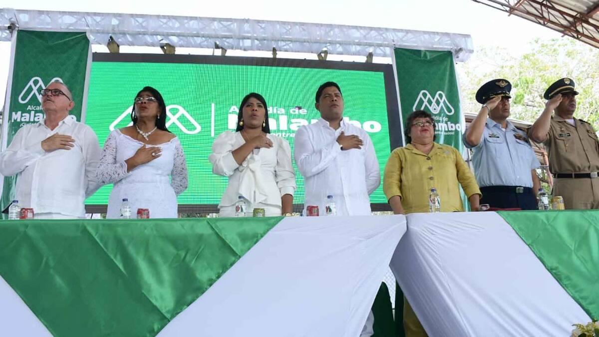 Luego, el cantante de ópera oriundo de Malambo, Kelvin Lara, entonó el himno del municipio, que dio paso a tres totes y un estallido de aplausos de los más de 500 asistentes que anunciaron la toma del juramento del alcalde ante la notaria única, Maribel Camargo.