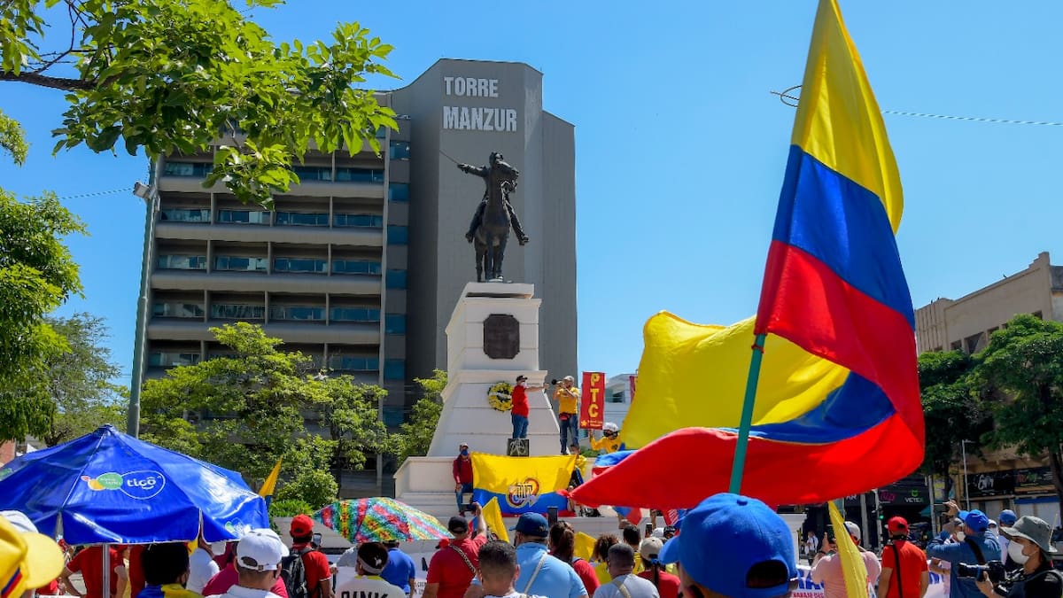 Entonando el himno de Colombia, con banderas y carteles, le dieron comienzo a la concentración multisectorial en el Centro de Barranquilla.