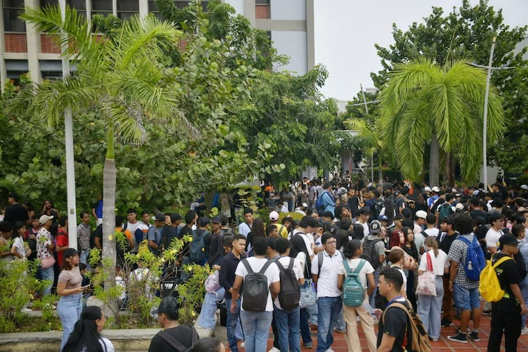 7:50 a.m. Centenares de estudiantes se agolpaban en la plazoleta de la universidad, mientras que los jurados y testigos seguían llegando al sitio, en medio de fuertes lluvias.
