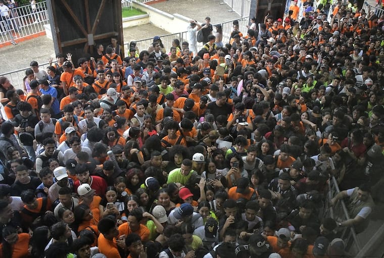 Los estudiantes hacen una fila final para entrar al recinto, otra para ingresar al salón de votación y luego una más en la mesa en la cual están registrados con su número de cédula.