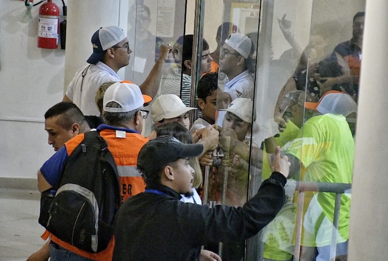 La situación llevó a que las puertas fueran bloqueadas, generando congestión y aumentando la tensión.