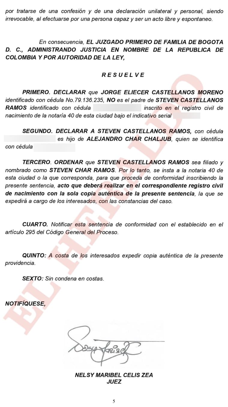 El pasado 15 de octubre, EL HERALDO reveló nuevos detalles, incluida la totalidad de la sentencia, sobre el hijo reconocido por Alejandro Char.