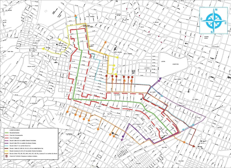 Los conductores que transitan por las calles 57, 58, 62, o 63 en sentido sur-norte (de la carrera 44 hacia la Vía 40) se deben desviar doblando a la izquierda por la carrera 47 hasta la calle 64, punto en el cual deben cruzar a la derecha hasta la carrera 59, seguir por la carrera 59 para tomar la vía de preferencia.