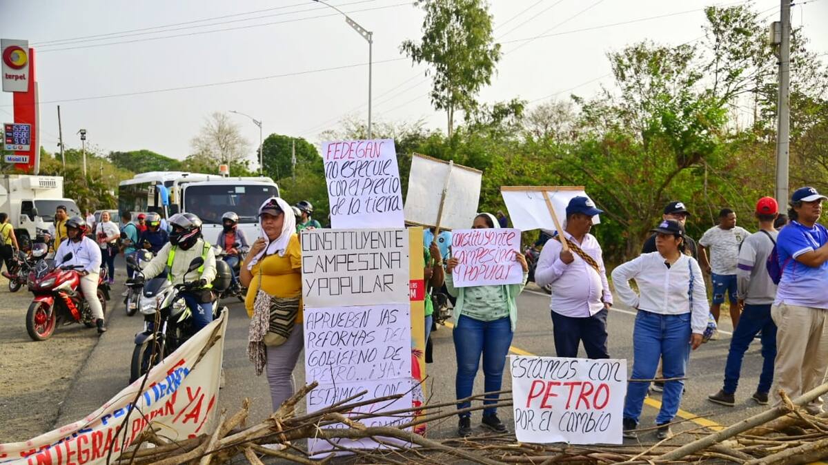 Desde los bloqueos en la vía Cordialidad, a la altura de Pital de Megua, Baranoa, Jaime Hernández, miembro de Asoagro, manifestó que el plantón es en respaldo a la reforma agraria y los derechos de los campesinos.