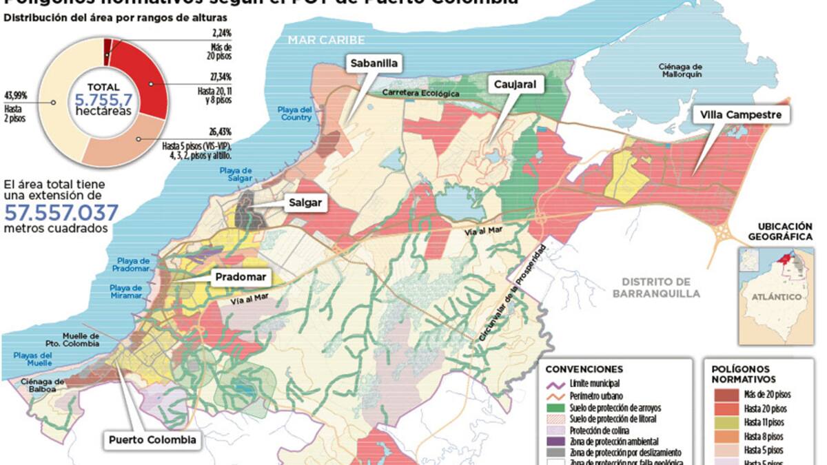 Para contrarrestar el impacto de esta apuesta, el PBOT también delimita las áreas de conservación y protección de Puerto Colombia, y se ajusta a la revisión del Plan de Manejo y Ordenación de una Cuenca, POMCA, tal como lo establece el Ministerio de Ambiente. Por la expansión urbana que tendría el municipio, el plan acoge además la iniciativa de ampliación de servicios públicos y de su estructura vial.