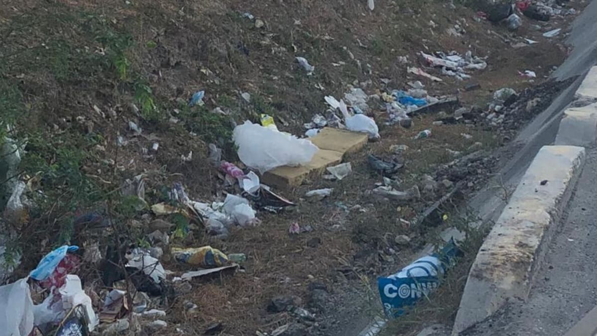 La usuaria comenta que es lamentable ver esto así, ya que si llueve todo ese plástico se va a contaminar el mar, además que reparcharon la vía y los escombros fueron depositados en el canal'.