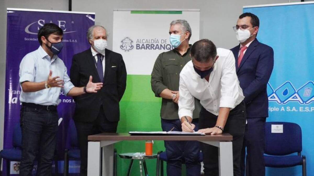 El anuncio fue realizado por el presidente Iván Duque y el alcalde Jaime Pumarejo en medio de un acto que se cumplió para la firma protocolaria del contrato de compra-venta de las acciones de la empresa Triple A.