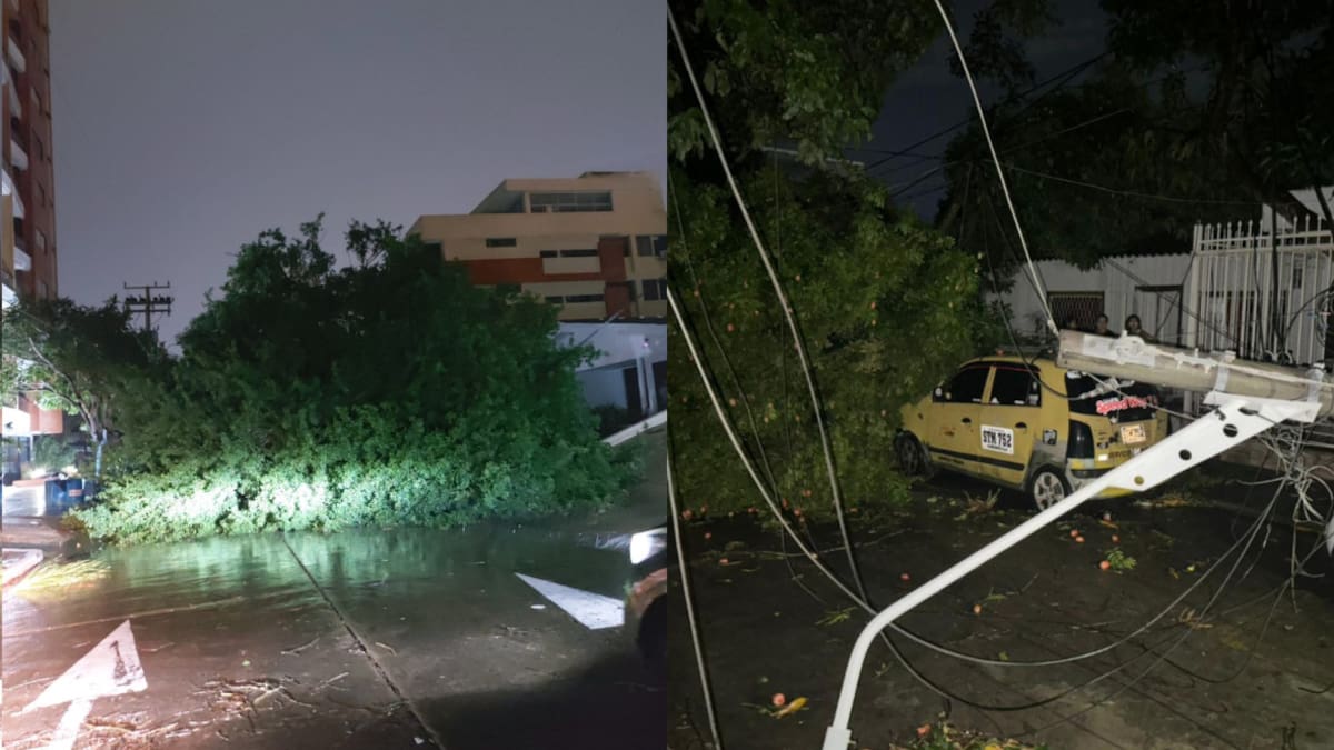 En la noche de este lunes 16 de septiembre en Barranquilla y su área metropolitana se registraron lluvias acompañadas con fuertes vientos de hasta 79 km/h que causaron la caída de redes eléctricas, árboles y explosión de transformadores, por lo cual varios sectores se quedaron sin el servicio de energía por horas.