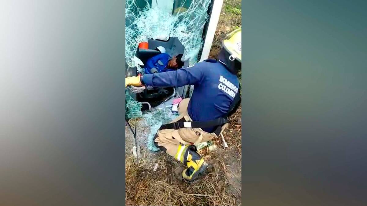 Según reportaron varios usuarios de la línea Wasapea a EL HERALDO, se trata de dos operarios de la empresa Electricaribe, los cuales quedaron atrapados dentro del vehículo y tuvieron que ser rescatados por una cuadrilla del cuerpo de bomberos de Puerto Colombia.