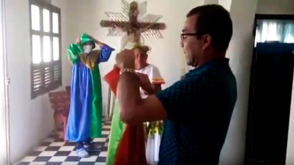'Todo estaba preparado, aprovechamos que una de las fieles iba a dar un anuncio para retirarme a la sacristía a ponerme el disfraz', confesó Ospino, quien es el sacerdote en esta parroquia desde hace cinco años.