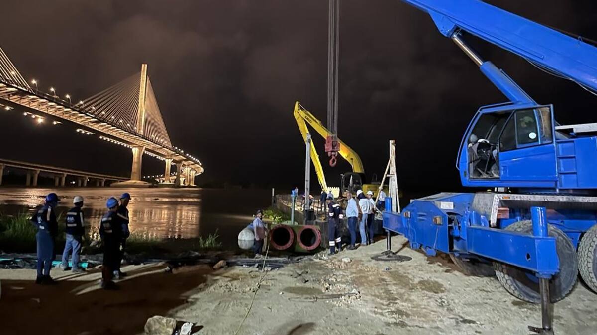 Igualmente, indicó que sus operarios ejecutaban trabajos de apertura de canales y la extensión de los diques con geobags (bolsas rellenas que sirven como barreras de protección), así como la instalación de una bomba de succión frente a la dársena para bombear una mejor agua cruda.