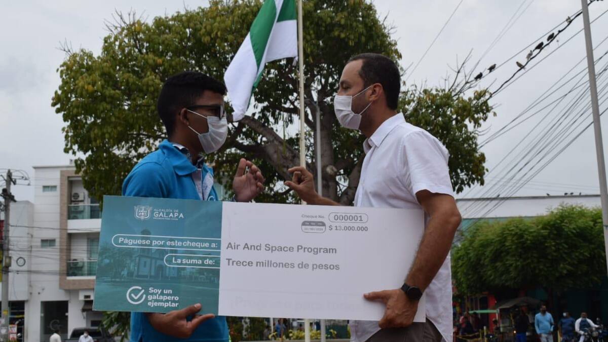 Por su parte, el alcalde de Galapa, José Fernando Vargas, le hizo entrega de un reconocimiento por valor de $13 millones para los gastos correspondientes a su viaje hacia la agencia espacial.