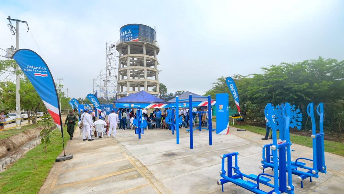'Lo lindo de la obra es que nos permitió cumplir otro anhelo de la comunidad, la intervención integral de la zona aledaña al tanque, donde ahora tienen una cancha de arena y gimnasio biosaludable para hacer ejercicio y recrearse. Además, avanzamos en la solución hidráulica para que el sector no se inunde cuando llueva', mencionó Noguera De la Espriella.