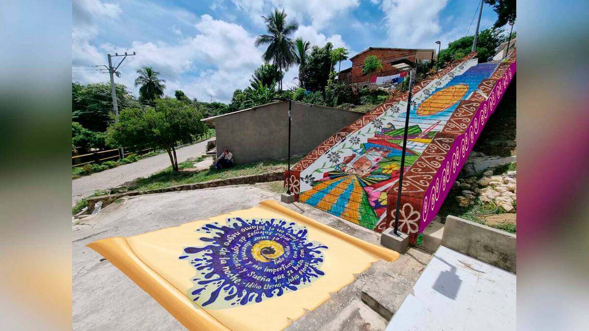 Dos artistas nacidos en el municipio, Edwin Solano y Danilo Jiménez, forman parte del equipo encargado de darle vida y color a las escaleras, en cuyo descanso estará plasmado el poema 'Idilio Eterno' de Julio Flórez.