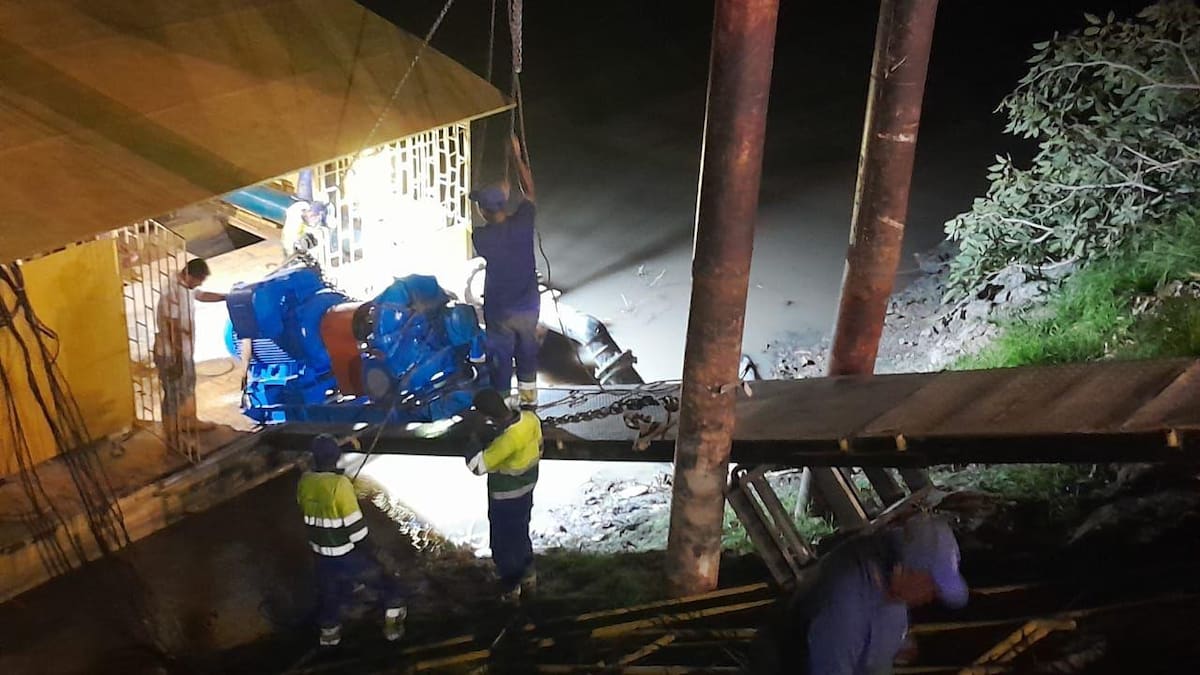 Este domingo continúan las tareas de instalación de la bomba, luego de que el personal de la empresa trabajara durante toda la noche y madrugada en el proceso.