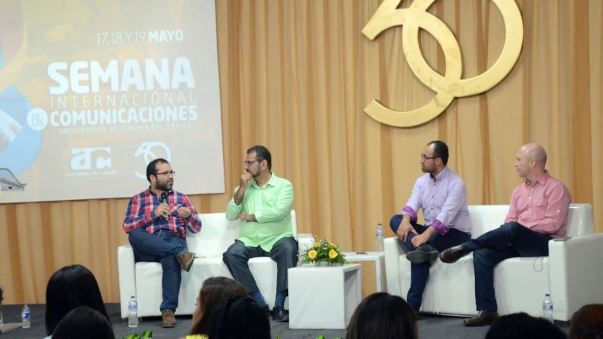 'Nunca se pensó en el periodismo que sería tan grande la era digital', reflexionó Anuar Saad, director de programa de Comunicación social y periodismo de la Universidad Autónoma del Caribe, al dar por terminada la conversación sobre los diarios y el mundo digital, con los jefes de contenidos web de los periódicos EL Tiempo, José Antonio Sánchez, El Espectador, Élber Gutiérrez y el jefe de redacción digital de este medio Leonardo Gómez.