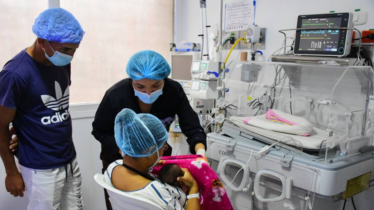De la mano, Angie Rivero y Julio Coronado llegan silenciosos hasta la incubadora en la que su bebé Sandrith Paola duerme tranquila. Con apenas siete días de nacida, la nenita avanza en su recuperación luego del parto de urgencia que ginecólogos y perinatólogos tuvieron que llevar a cabo para salvarles la vida a ella y a su mamá, quien tenía síntomas de preeclampsia.