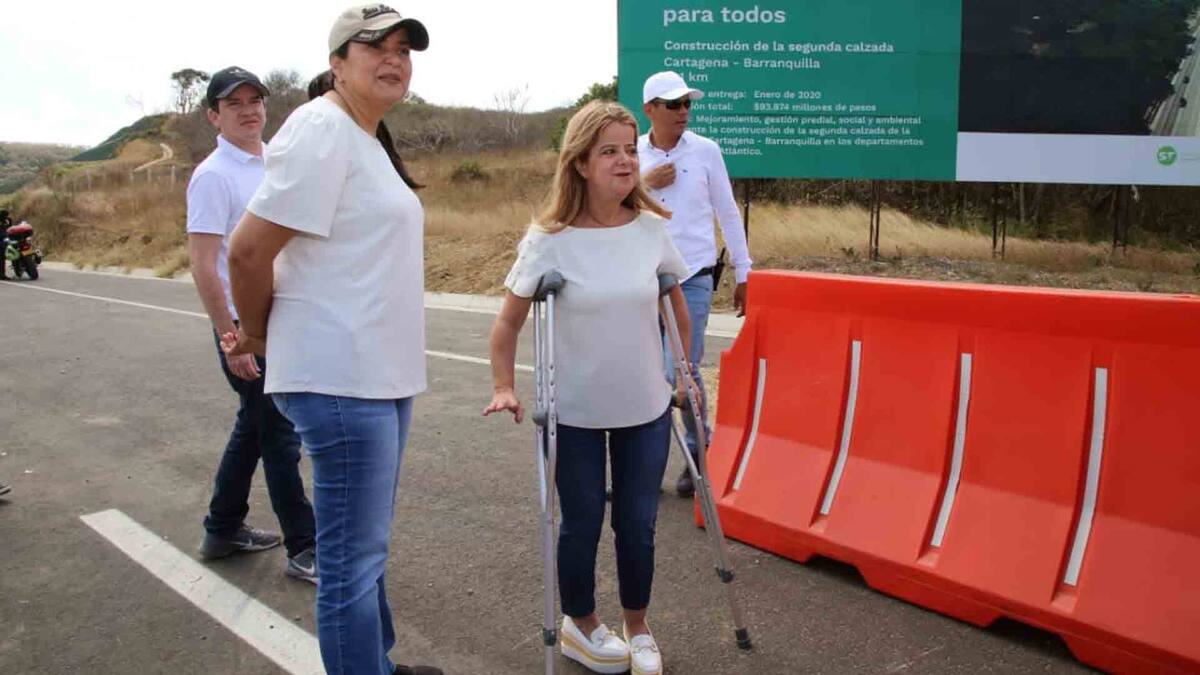 En un recorrido por la vía en mención que hace parte de las obras de doble calzada Barranquilla-Cartagena, la mandataria indicó que hay ocho kilómetros de la misma que están completamente terminados, que son de suma importancia para la gente de ambas ciudades, y que a pesar de que hace meses fueron entregadas por el contratista, están cerradas con vallas, sin que puedan ser usadas por la gente.