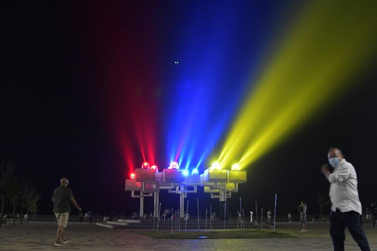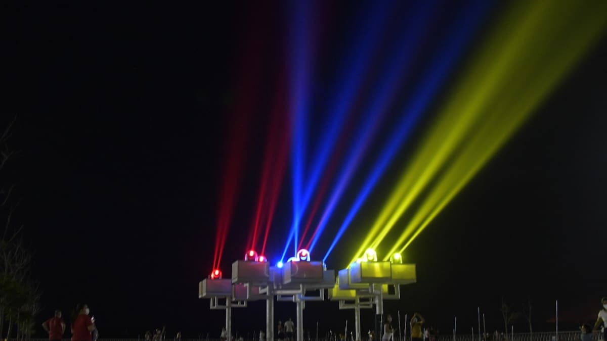 Las luminarias de la Plaza de las Luces se encenderán con los colores de la bandera. El acto se hizo anoche y se repetirá este martes, a las 7 p. m.