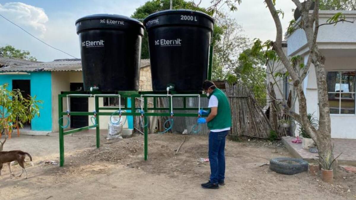 La instalación de los tanques, que se hizo en marzo del año pasado, para llevar agua potable a las comunidades del departamento del Atlántico carentes de sistemas de acueducto o que no son atendidas por la cobertura del servicio público. El propósito de ese plan es que los municipios cumplieran con las medidas sanitarias y de higiene dispuestas por el Gobierno por la pandemia de la covid-19.