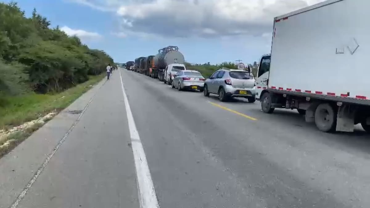 En las imágenes suministradas a EL HERALDO, se observa una larga fila de vehículos detenidos por la manifestación.