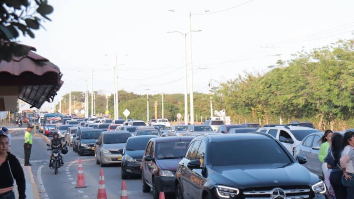 A través de Wasapea a EL HERALDO, usuarios reportaron un trancón de grandes proporciones en la vía que comunica a Barranquilla con Puerto Colombia, a la altura del peaje Papiros, este jueves 2 de febrero.