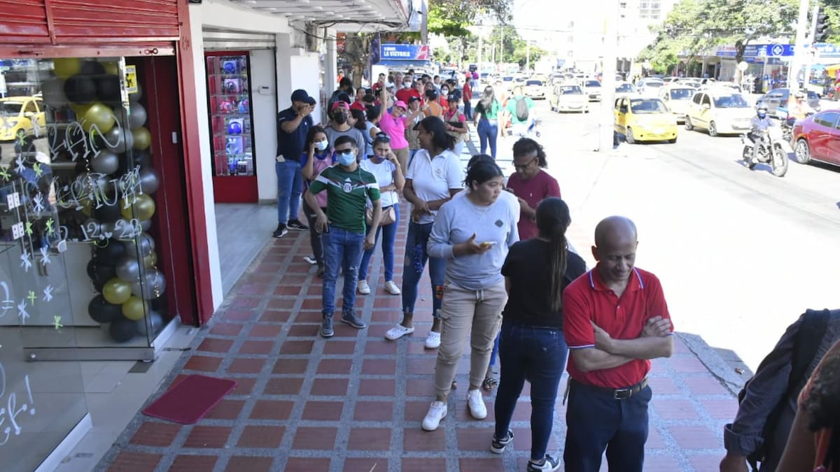 Uno de los puntos que se encuentra atiborrado de gente es el de Supergiros de la calle 72 con carrera 43, donde la fila logra dar la vuelta de la esquina.