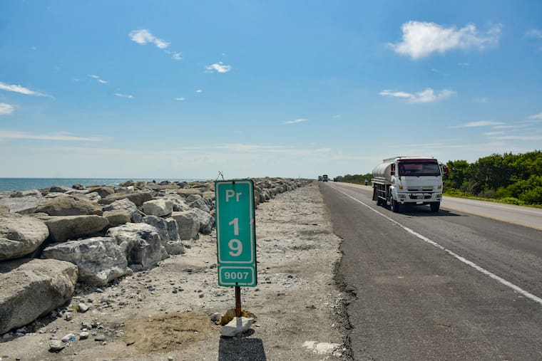 En la vía a Ciénaga, a la altura del kilómetro 19, se siente el impacto de las olas y la brisa en la carretera. La erosión costera en este sector ha venido avanzado con los años y los proyectos para solucionar dicha problemática se encuentran estancados.