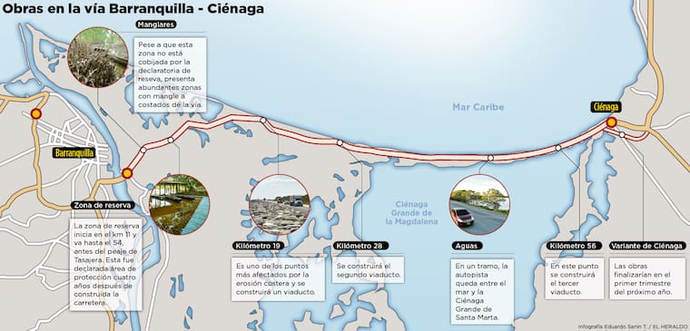 “El kilómetro 19 es el punto más crítico y en el que se puede presentar un avance súbito de la erosión costera ahora que ya entramos en la temporada de ciclones y así evitar una emergencia por la desconexión de los departamentos de Atlántico y Magdalena. De acuerdo con el Servicio Meteorológico Nacional de Colombia y el Ideam, esta temporada de ciclones podría ser un 85 % más intensa de lo normal con una mayor cantidad de tormentas tropicales y huracanes”, detalló.