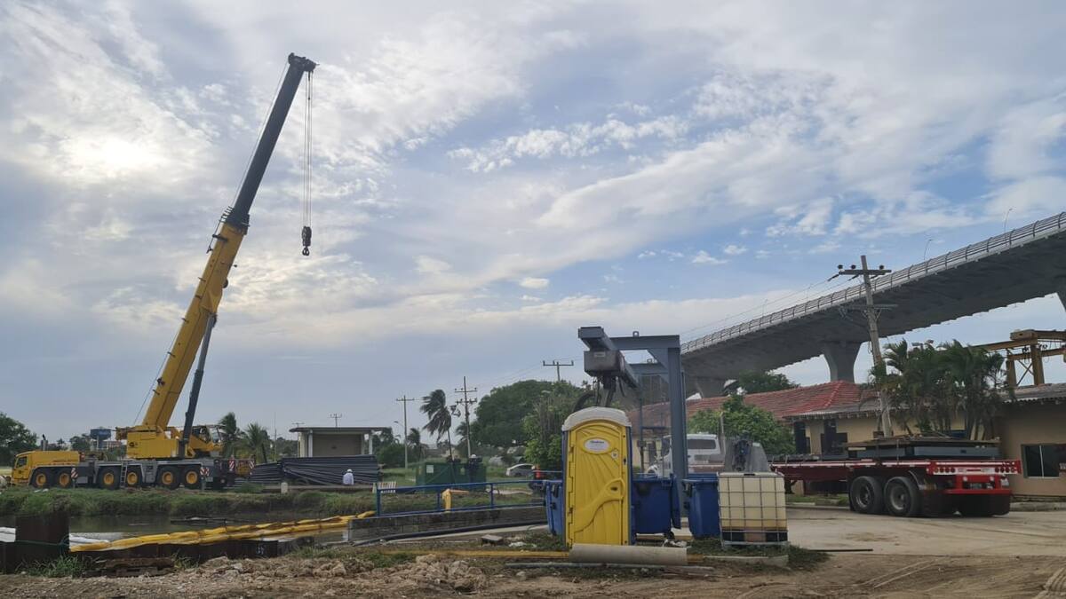 La empresa informó que se realiza el posicionamiento de equipos para el izaje de la piloteadora que cayó al canal de aducción en el acueducto.