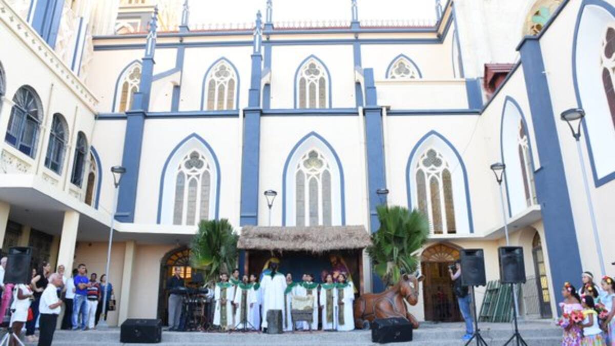 Con una puesta en escena de un pesebre en vivo empezó el acto de entrega de la restaurada Iglesia San Roque, en el centro de Barranquilla.