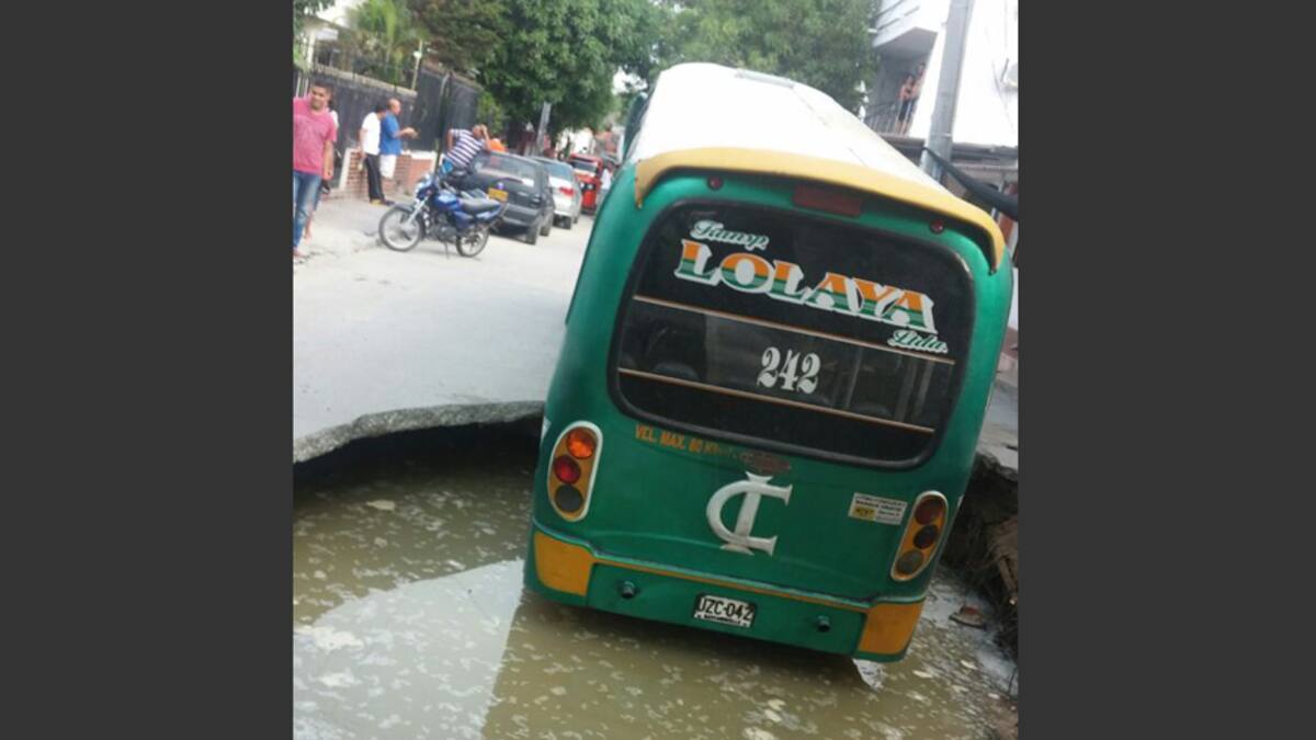 Imagen(es) de Barranquilla: En imágenes: Pavimento se socava y bus queda atrapado en Soledad 2000
