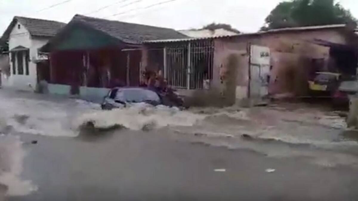 Los individuos transitaban la calle 48 con carrera 46, en un carro de marca Renault, cuando fuertes corrientes de agua los atraparon.