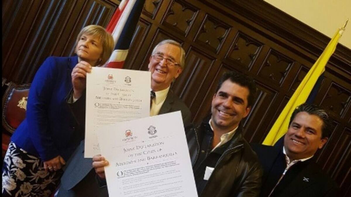 El alcalde Alejandro Char firmó este jueves el convenio de hermandad entre la ciudad de Barranquilla y Aberdeen, que busca la cooperación entre los territorios para el desarrollo de la industria del petróleo y gas en el Caribe colombiano.