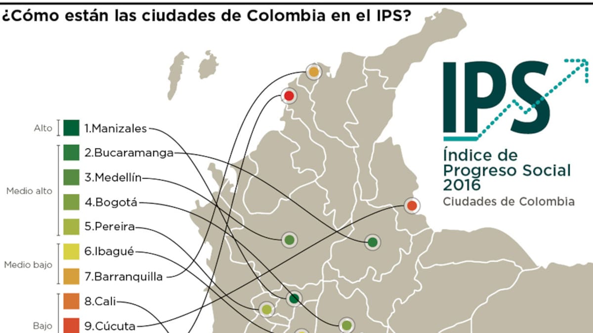 El IPS (Índice de Progreso Social) analiza y califica los países con base a las herramientas que tienen para su desarrollo social. Para esto, se hace un estudio de las diez ciudades más importantes, donde habita el 40% de la población, y se genera un puntaje de 0 a 100, donde los más altos suponen mayores niveles de progreso social.