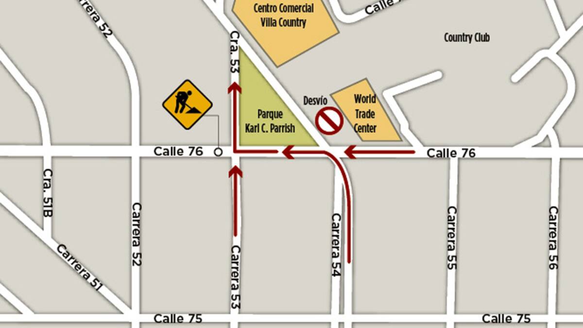 De otra parte, los conductores que transiten por la calle 76 hacia Villa Country, podrán cruzar a la derecha por la carrera 53 hacia su destino.