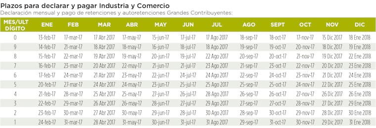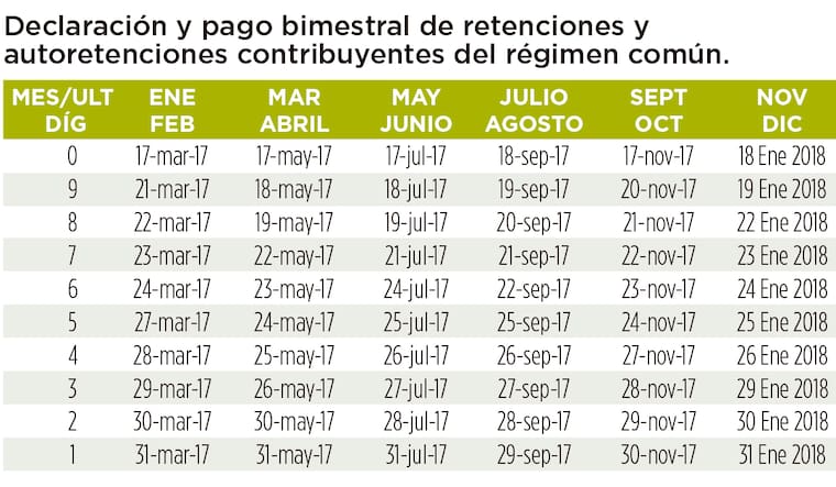 Para el caso del régimen común, los grandes contribuyentes tienen que presentar la declaración cada mes y comienza desde el 13 de febrero de 2017. Las declaraciones y pagos serán en las fechas que se indican en el gráfico (ver calendario), teniendo en cuenta el último digito del NIT o el número de identificación tributaria.