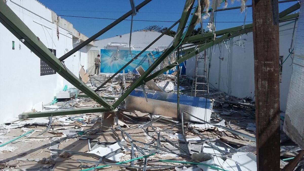 Entre los congregados y personal de apoyo del templo, continúan sacando, pieza por pieza, las partes del que fue, pero ya no es techo de nada. Del esqueleto de vigas que sostuvieron alguna vez las láminas, solo queda un arrume de hierros retorcidos que siguen enfrentando los continuos empellones de un viento, que no parece querer dar tregua.