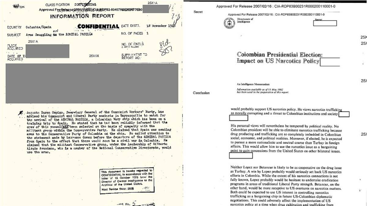Reconocía la CIA que el presidente saliente, Julio César Turbay Ayala, con su polémico Estatuto de Seguridad contra los rebeldes, que ocasionó torturas y desapariciones, 'durante la mayor parte de su mandato ha cooperado con los esfuerzos de control de las drogas de EEUU', y advertía que 'su sucesor va a ser menos sensible a los intereses de EEUU y probablemente se distancie de la postura pro-EEUU de Turbay'.
