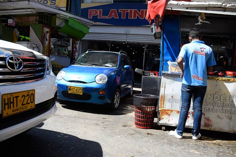 En el Centro Histórico, los conductores aseguran verse obligados a hacer ‘marañas’ para encontrar parqueo. En la calle 36 con carrera 41, como en otras vías del sector, hay carros estacionados hasta en medio de las pequeñas chazas o casuchas comerciales.