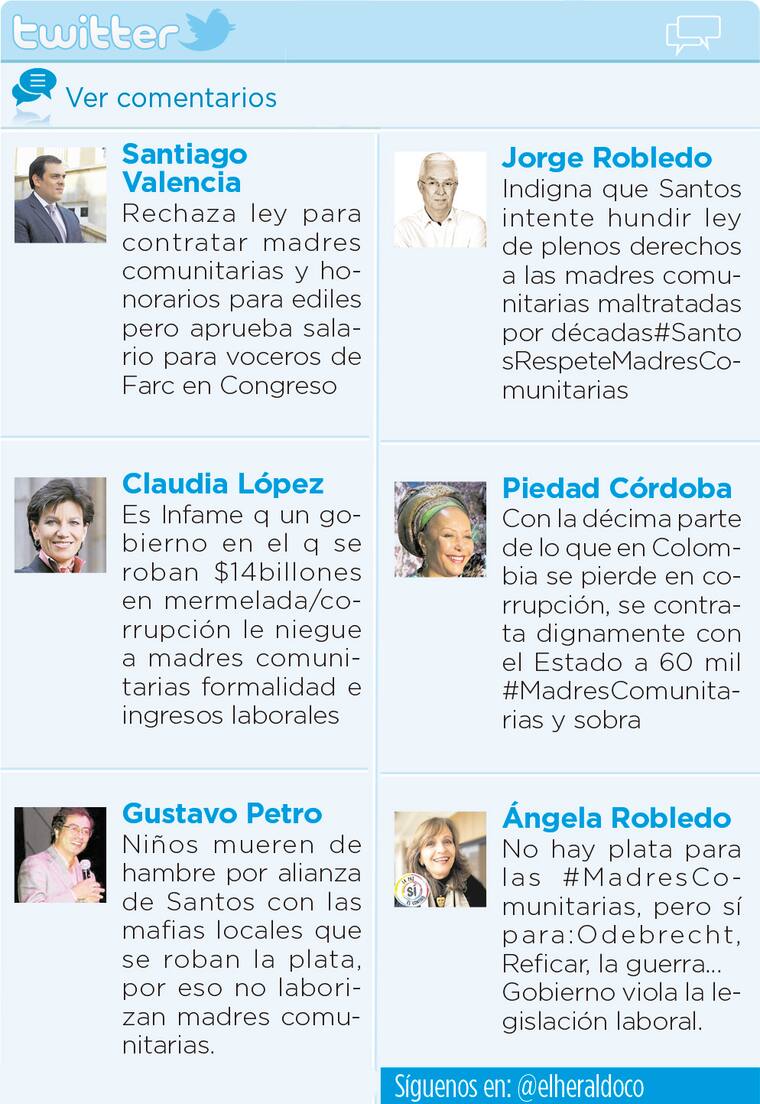 La decisión del Ejecutivo le significó al mandatario ser blanco de fuertes críticas y ser cuestionado como merecedor del Premio Nobel de Paz 2016. 'Presidente Juan Manuel Santos miserable, a las humildes madres comunitarias y a un millón de niños les niega sus derechos. ¿Qué clase de premio Nobel es usted?', escribió en su Twitter el autor del proyecto en mención, Alexander López Maya, congresista por el Polo Democrático.
