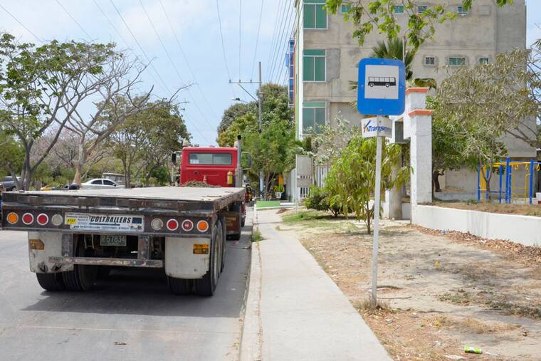 Por otro lado, en la rotonda de la Urbanización El Parque, en la carrera 42 con la Avenida Las Torres, las tractomulas que arriban a los distintos parqueaderos también terminan por estacionarse sobre el andén, tomando gran parte del espacio del peatón.