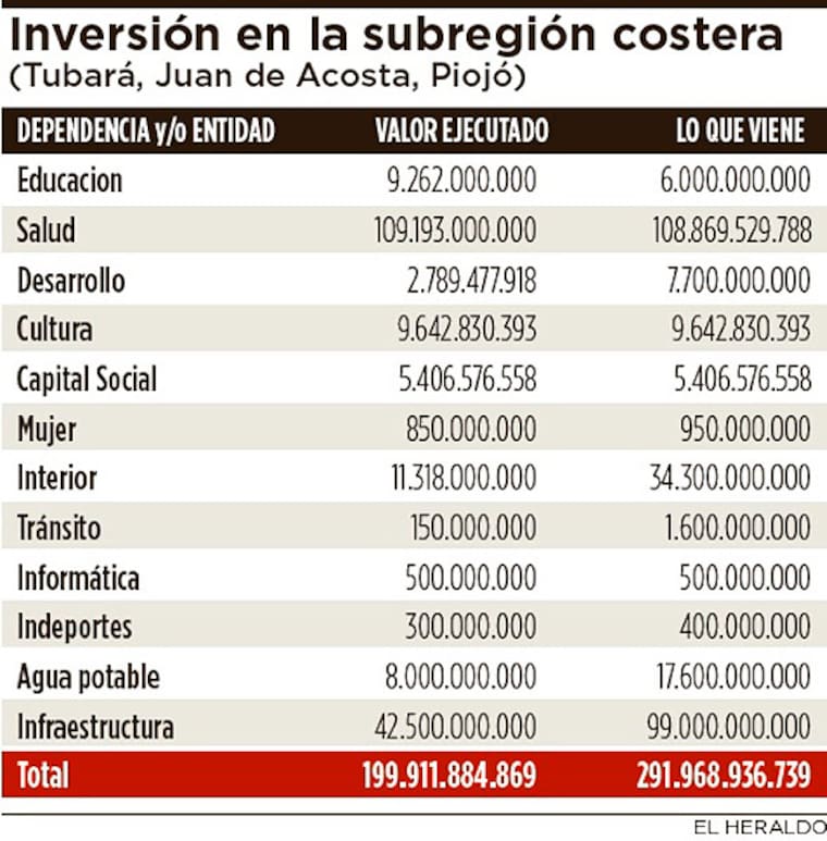 El gobernador del Atlántico, Eduardo Verano, reportó inversiones de $200.000 millones en la subregión costera durante la vigencia fiscal de 2016. En el acto de rendición de cuentas que se celebró ayer en Santa Verónica, corregimiento de Juan de Acosta, el mandatario señaló que la construcción de infraestructura vial sobresale dentro de los planes que él y su gabinete han contemplado para la zona norte del departamento.