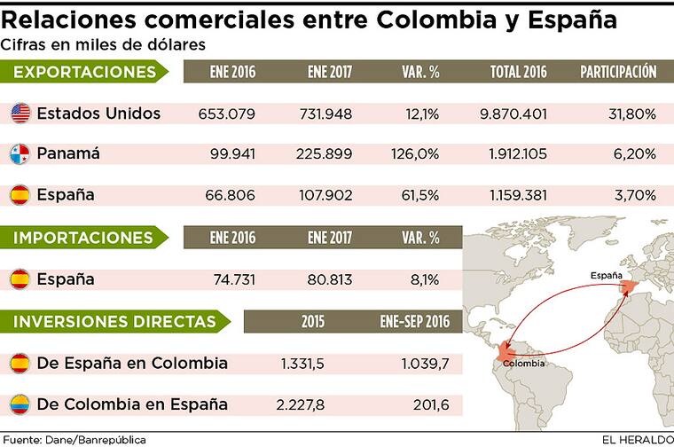 En cuanto a las inversiones directas entre los dos países, de enero a septiembre del año pasado, desde España llegaron USD1.039 millones por cuenta de Inversiones Extranjeras Directas (IED), mientras que desde Colombia a ese país entraron unos USD201 millones.