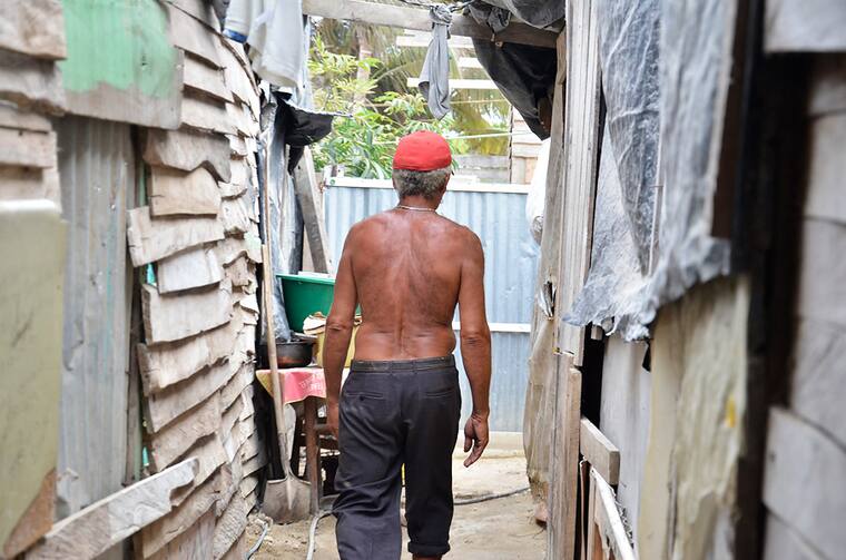 La tercera casa, la de la mitad, está pintada con de verde helecho. En la entrada se congregan los vecinos alrededor de Nelley Pérez, quien tiene sobre su muslo el pie de Edilberto Solano.