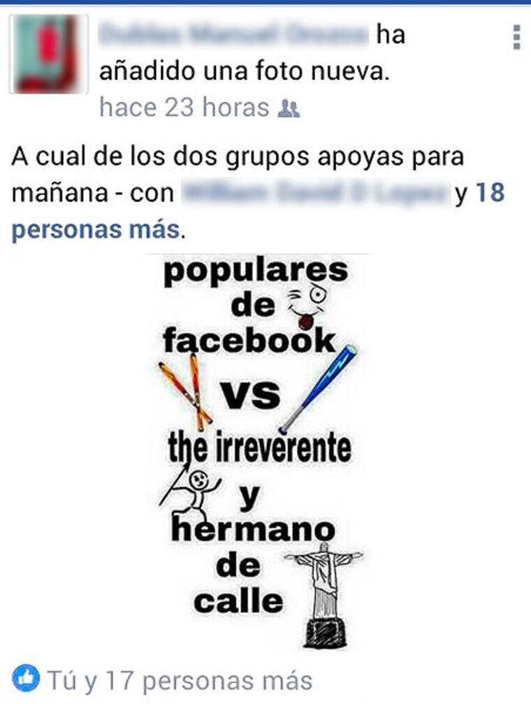 Según denuncian usuarios del servicio Wasapea a EL HERALDO, los enfrentados, que estaban divididos en los bandos de ‘Los Irreverentes’ y ‘Los Populares’, llegaron al lugar luego de citarse cuatro horas antes por medio de Facebook.