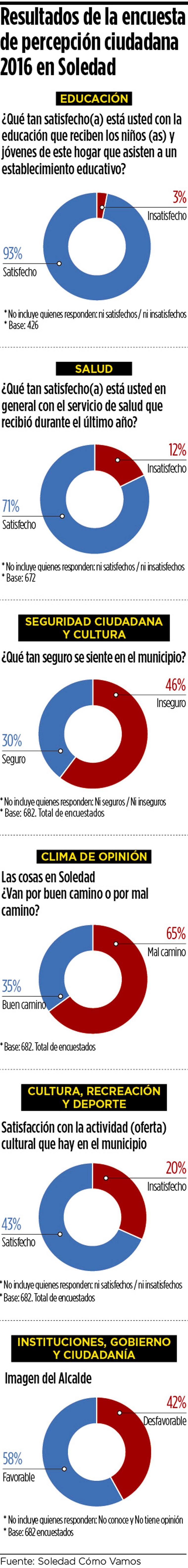 De acuerdo con los resultados, el 65% de los encuestados respondieron que las cosas en Soledad van por mal camino, mientras que el 35% piensa lo contrario.