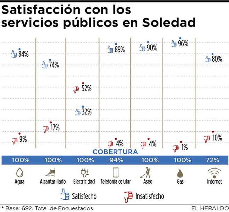 Sin embargo, aspectos relacionados con el hábitat urbano, tales como parques, espacio público, vías y alumbrado público no resultaron bien evaluados por los soledeños encuestados.