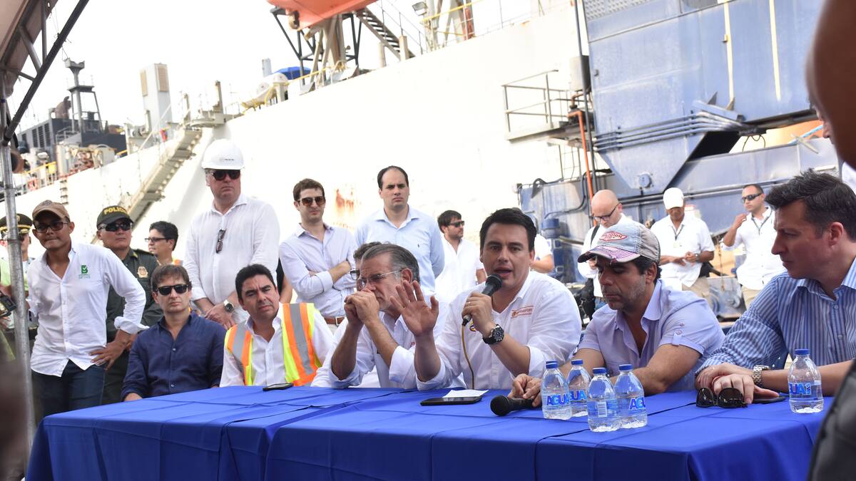 Rojas estuvo en la ciudad para recibir la draga ‘Pedro Alvares’ de la firma Jan de Nul que tendrá a su cargo los trabajos de extracción de sedimento que se extenderán por al menos 10 días.