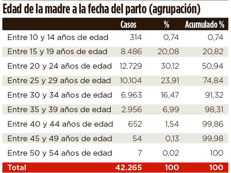 Según estás cifras, el 30% de estas madres tiene entre 20 y 24 años, mientras que el 23,9% tiene entre 25 y 30 años de edad.